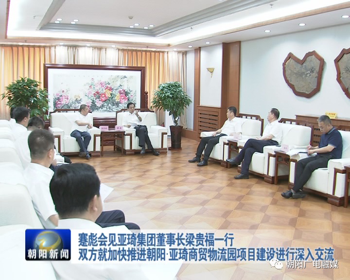 蹇彪对梁贵福一行的到来表示欢迎。他表示,朝阳当前正着力建设辐射京津冀地区的北方区域性物流中心,亚琦集团来朝投资建设国际物流商贸城,充分体现了企业的战略布局和长远眼光。尤其朝阳已进入高铁时代,为商贸物流项目建设发展提供了更加良好的环境和空间。朝阳市委市政府全力落实项目管家制度,主动为企业解决难题,全力做好要素保障,目前项目进展顺利。希望项目进一步加快建设,打造朝阳物流业样板,引领行业健康发展。朝阳各职能部门将一如既往地为项目建设服务,推动项目早日建成。