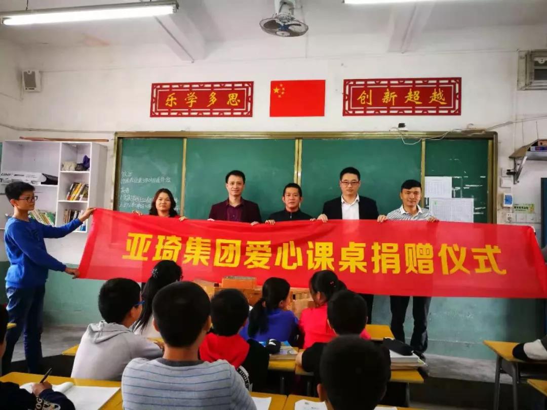 为积极履行社会责任,关注支持地方教育事业发展,2018年10月10日亚琦集团有限公司为南康区第五中学七(二)班捐赠一批崭新的爱心书桌椅。