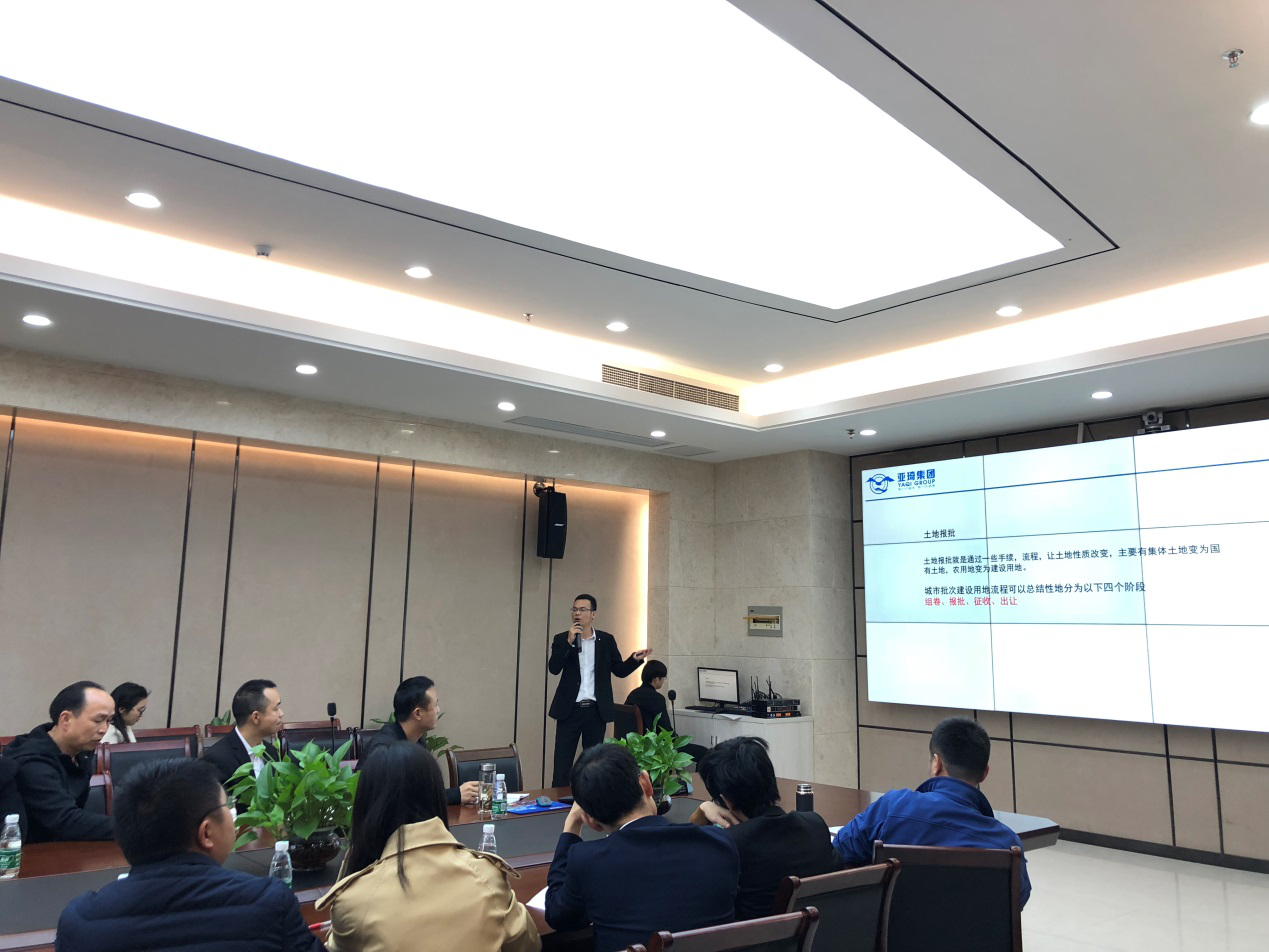首先,抚顺项目负责人蓝总为大家带来第一堂课——《项目前期投资与开发》,蓝总详细介绍了从土地资源的获取到最终拿地的整个流程以及注意事项。通过对以往拿地案例进行分析,让大家了解了公司拿地前期的程序,以及公司拿地选址标准。